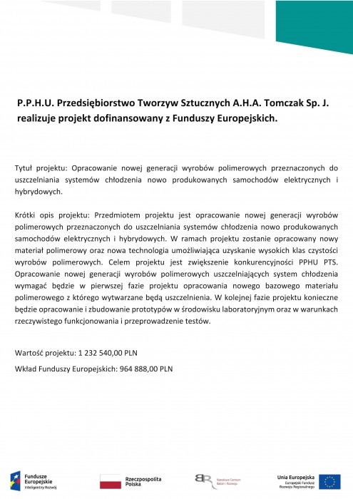 Projekt współfinansowany przez Unię Europejską ze środków Europejskiego Funduszu Rozwoju Regionalnego w ramach Programu Inteligentny Rozwój. Projekt realizowany w ramach konkursu Narodowego Centrum Badań i Rozwoju: Szybka Ścieżka.